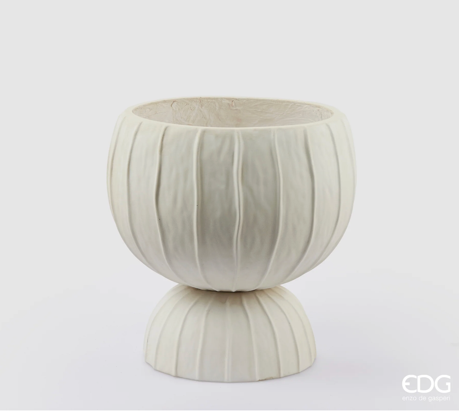 Vaso Righe Bombato Con Piede H35 Bianco - EDG - Enzo De Gasperi